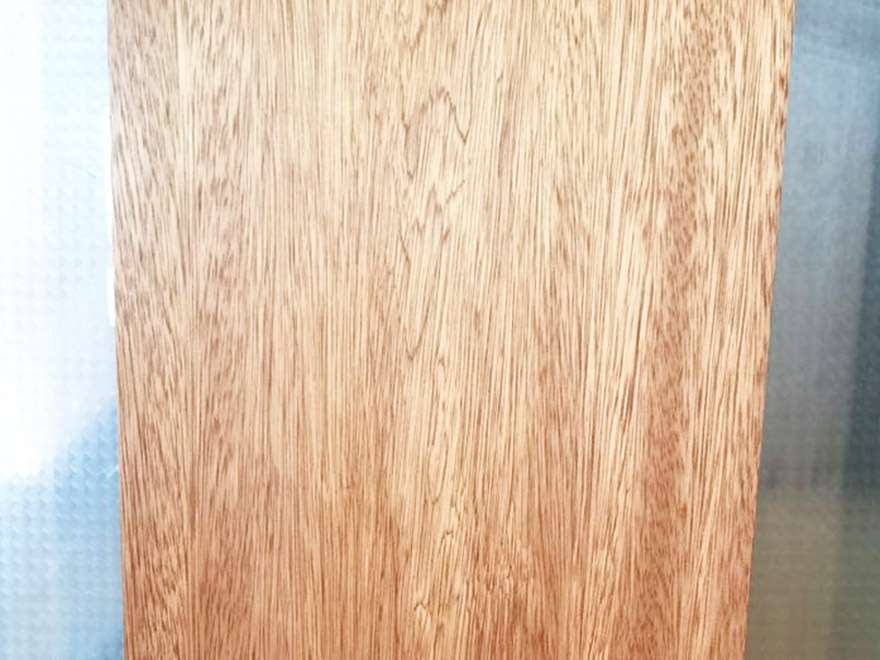 光澤強(qiáng);花紋美麗。紋理交錯(cuò);導(dǎo)管粗獷,做產(chǎn)品立體感整體效果較強(qiáng),穩(wěn)定性中等;握釘力強(qiáng),結(jié)構(gòu)粗;重量和強(qiáng)度中等;硬度略高;干縮大。鋸、刨容易,易起毛和撕裂;油漆、拋光和膠黏性能良好;略難釘釘;略耐腐。干燥宜慢,易開(kāi)裂、翹曲。